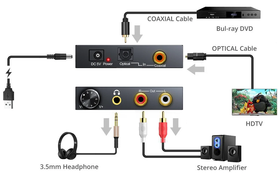 192kHz conversor DAC digital óptico coaxial Toslink para analógico l/r rca 3.5mm jack adaptador conversor de áudio com controle de volume